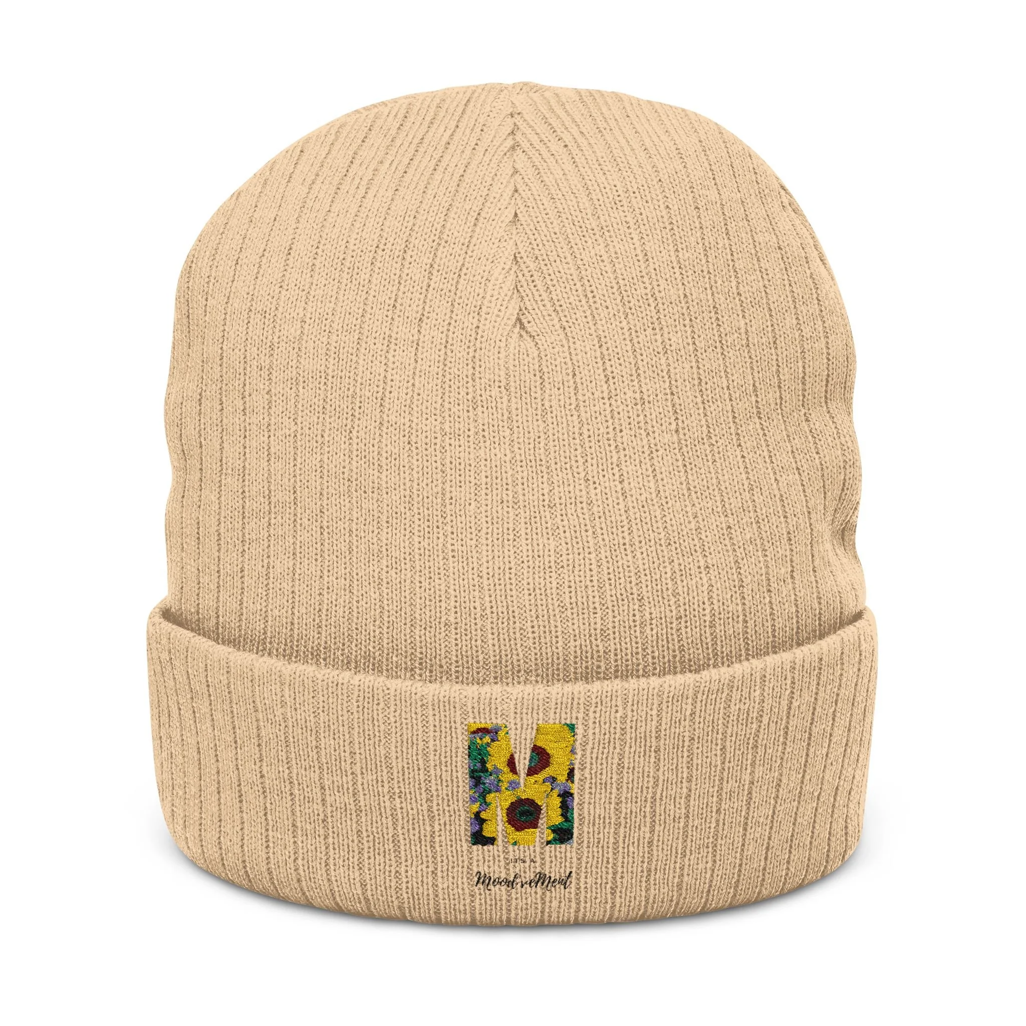 This ribbed knit beanie brings a quiet, hand-stitched charm to chilly days. Softly textured ribs and a folded cuff give it a classic silhouette, while the small embroidered sunflower motif adds a warm, nature-inspired accent that feels personal and handcrafted. Lightweight but snug thanks to the double-layer knit, it tucks easily into a tote or backpack and layers naturally under a hood or over a messy bun. Wear it on slow weekend walks through the neighborhood, late-night bonfires, or while tending a city balcony garden — it settles into routines and becomes a familiar, comforting companion.